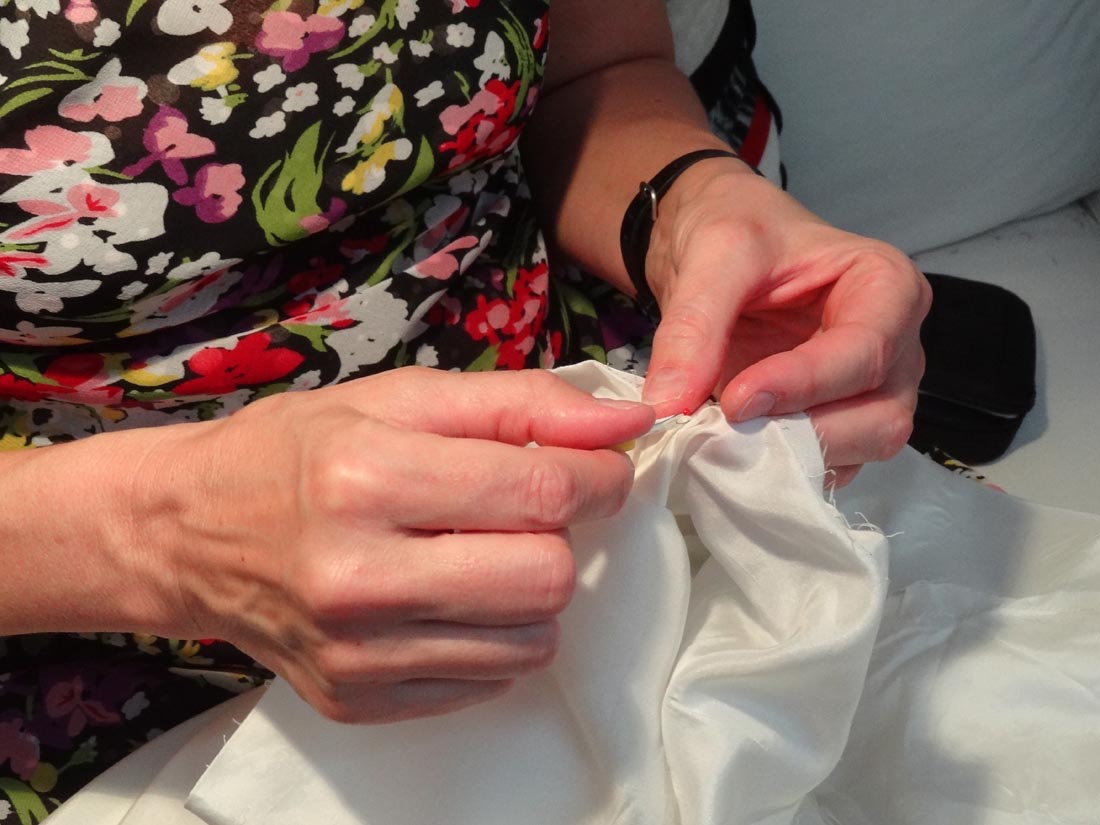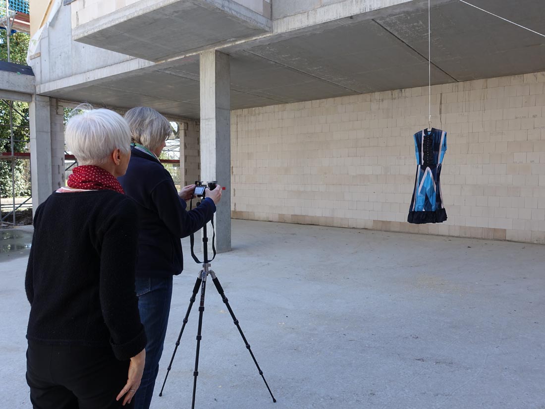 Gesammelt wurden Kleidungstücke und Stoffe, die eine Geschichte mitbringen. Von historischer Relevanz ist beispielsweise das rote Stoffband, das zwischen Maueröffnung und feierlicher Wiedervereinigung von Kleinmachnow und Berlin vorübergehend noch die Welten trennte. Von den dunkelsten Stunden unserer Geschichte erzählt ein Kinderkleidchen, das zurückblieb, als die Freundin und ihre ganze Familie eines Nachts nach Auschwitz deportiert wurden.